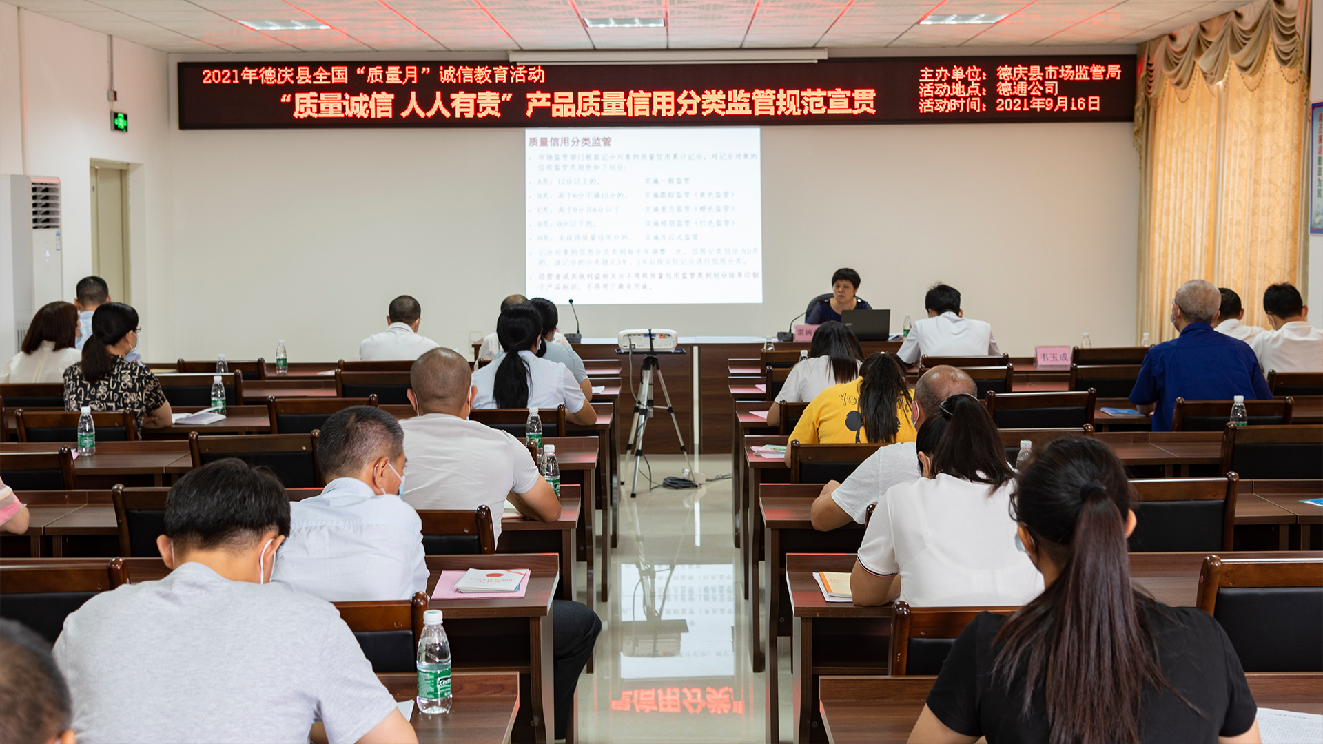 會(huì)議上,德慶縣市場(chǎng)監(jiān)管局宣貫了相關(guān)法律法規(guī),向企業(yè)派發(fā)宣傳資料;并進(jìn)行了“講誠(chéng)信、守法紀(jì)”誠(chéng)信主題教育活動(dòng)宣誓、企業(yè)質(zhì)量誠(chéng)信承諾書(shū)簽訂活動(dòng)。