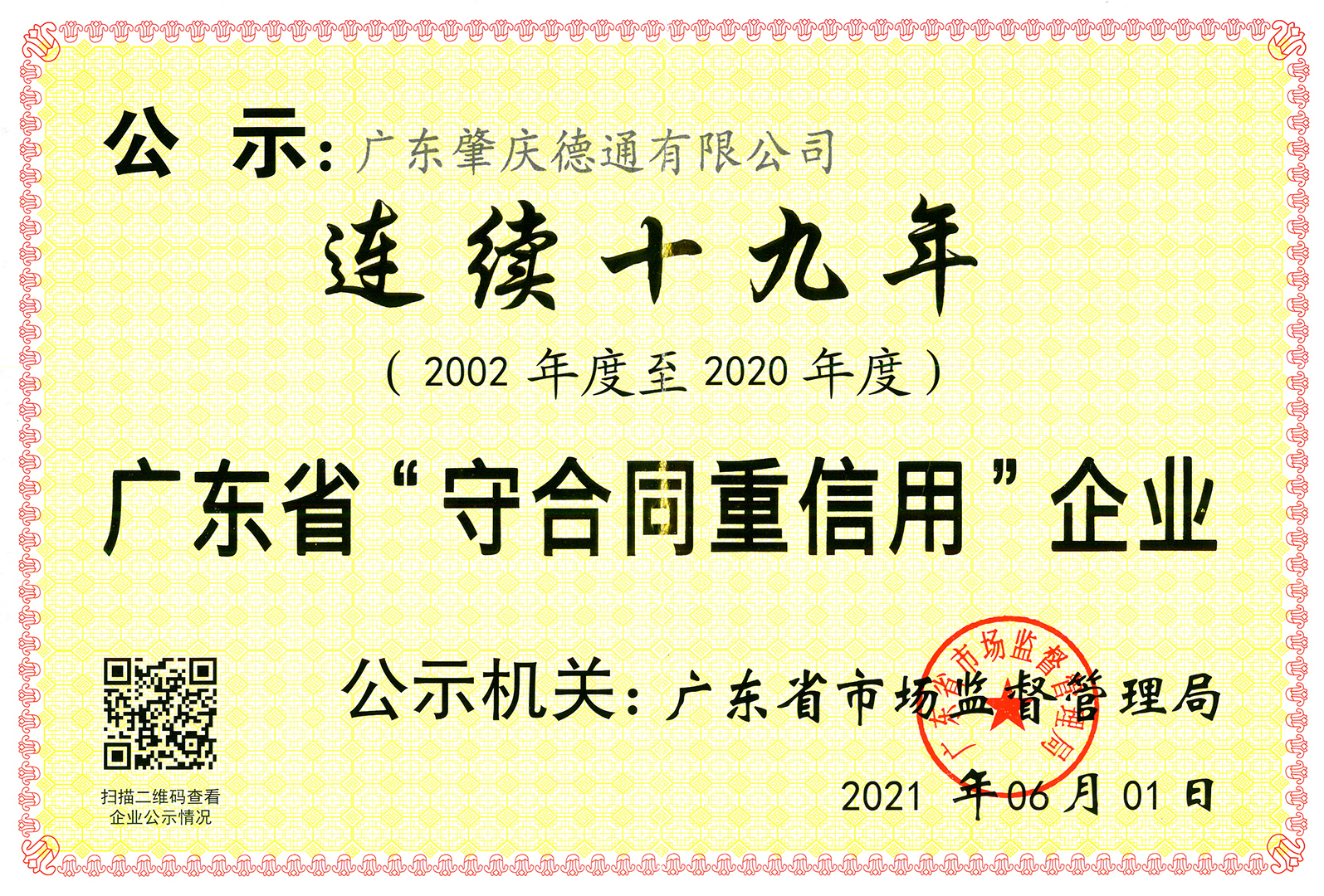 德通公司建立了健全的質(zhì)量保證體系,于1999年通過(guò)了ISO9001國(guó)際質(zhì)量管理體系認(rèn)證,多項(xiàng)風(fēng)機(jī)、風(fēng)扇產(chǎn)品通過(guò)了CE、CB、ROHS、ERP、GS、UL、AMCA、SASO、SAA、S-mark、PAI、CCC等認(rèn)證。并在近期再獲廣東省“守合同重信用企業(yè)”榮譽(yù)稱號(hào),這是德通公司連續(xù)19年(2002-2020年度)獲得此殊榮。