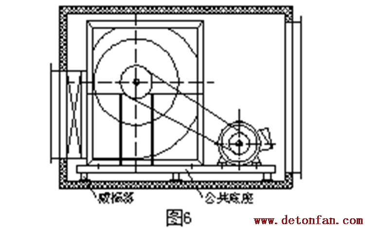 ④在箱內(nèi)使用減振器時,務必使風機和電機安裝于同一底座上(圖6)。