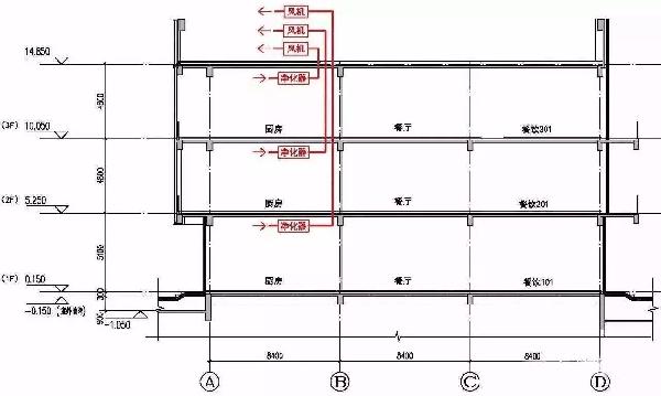 機房、風(fēng)機及風(fēng)管的布置廚房的排風(fēng)機宜設(shè)在廚房的上部,廚房為公共建筑中的一部分時,其排風(fēng)機宜設(shè)在屋頂層,這可以使風(fēng)道內(nèi)處于負壓狀態(tài),避免氣味外溢。